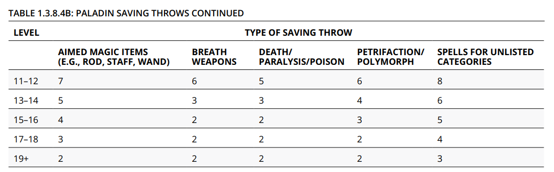 OSRIC - AD&D CHARACTER SAVE AND ATTACK MATRICES